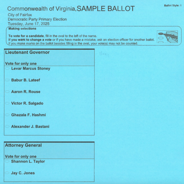The next step in this electoral cycle happens tomorrow, when Virginia holds its primary election. Unlike New Jersey last week, Virginia’s 2025 gubernatorial race lacks any primary competition: Republican Lt. Gov. Winsome Earle-Sears and former Rep. Abigail Spanberger, the Democrats’ standard-bearer, are both unopposed. Similarly, Republicans have already settled on their nominees for lieutenant governor and attorney general. Conservative radio host John Reid is unopposed in the GOP race to succeed Sears-Earles in the number two slot, while Attorney General Jason Miyares opted to seek reelection rather than take on Earle-Sears for the party’s gubernatorial nod (unlike the governor, neither Virginia’s lieutenant governor nor attorney general have term limits).2